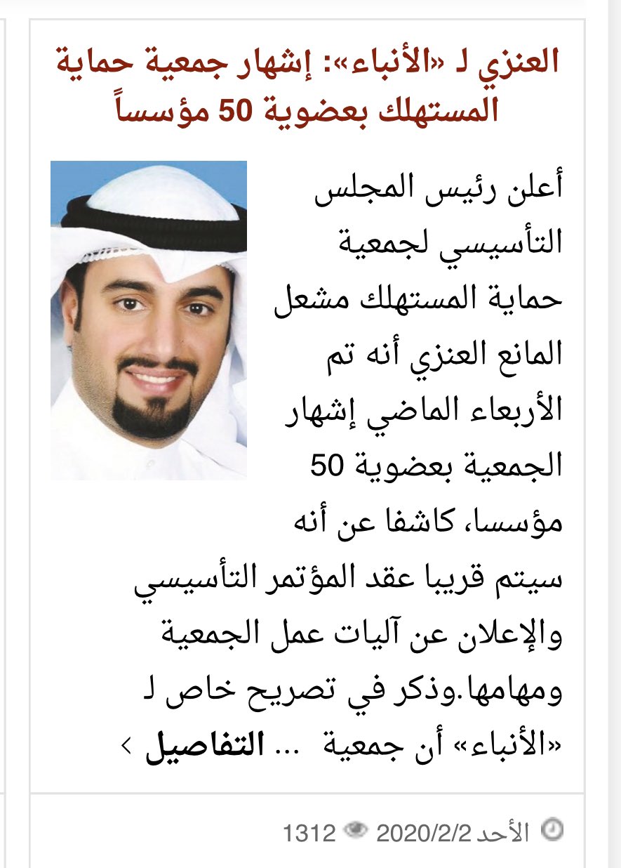 جمعية حماية المستهلك On Twitter رئيس المجلس التأسيسي لـ جمعية حماية المستهلك سيتم قريبا عقد المؤتمر التأسيسي والإعلان عن آلية عمل الجمعية الكويت Https T Co 4xpw8ub4qq