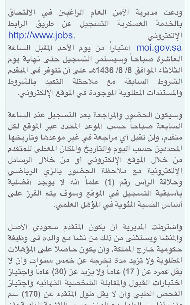 عبدالهادي المطلق Ar Twitter الامن العام يرسل رسائل القبول النهائي وموعد الدور في كلا من منطقة عسير و المدينة المنورة و الدمام يوم الأربعاء الموافق ١٤٣٨ ١٠ ١١ Https T Co Vr1mvhaprl
