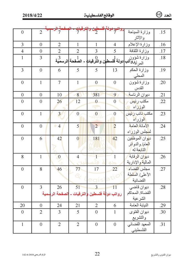جدول الرتب والرواتب الخاص بالموظفين رواتب دولة فلسطين والترقيات الصفحة الرسمية فيسبوك