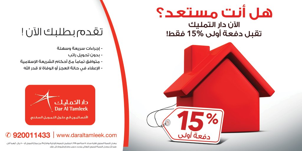 د ا ر الـ ـتـ ـمـ ـلـ ـيـ ـك On Twitter دار التمليك تقبل الآن دفعة أولى 15 بادر وقدم طلبك الآن Https T Co V28xxsjlvj