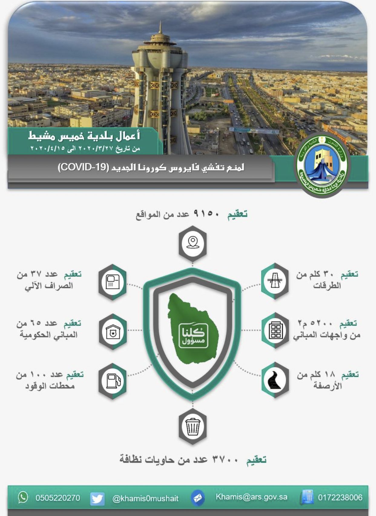أمانة منطقة عسير على تويتر بلدية خميس مشيط تعقم ٩١٥٠ موقع البلديات تكافح كورونا أمانة منطقة عسير