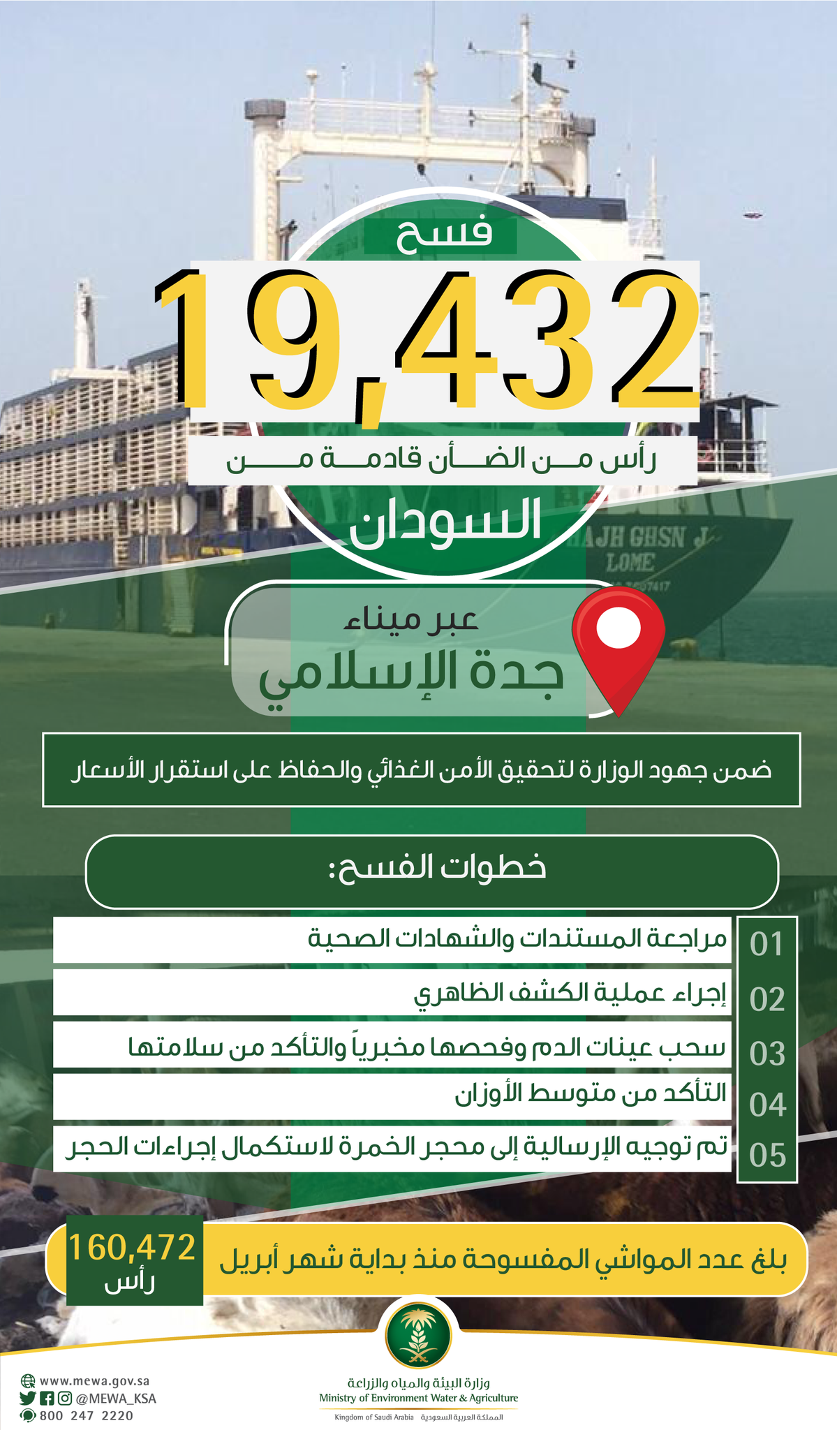 وزارة البيئة والمياه والزراعة On Twitter تعزيز ا للأمن الغذائي وزارة البيئة والمياه والزراعة تفسح أكثر من 19 ألف رأس من الضأن قادمة من السودان عبر ميناء جدة الإسلامي Https T Co Qafolphcvo