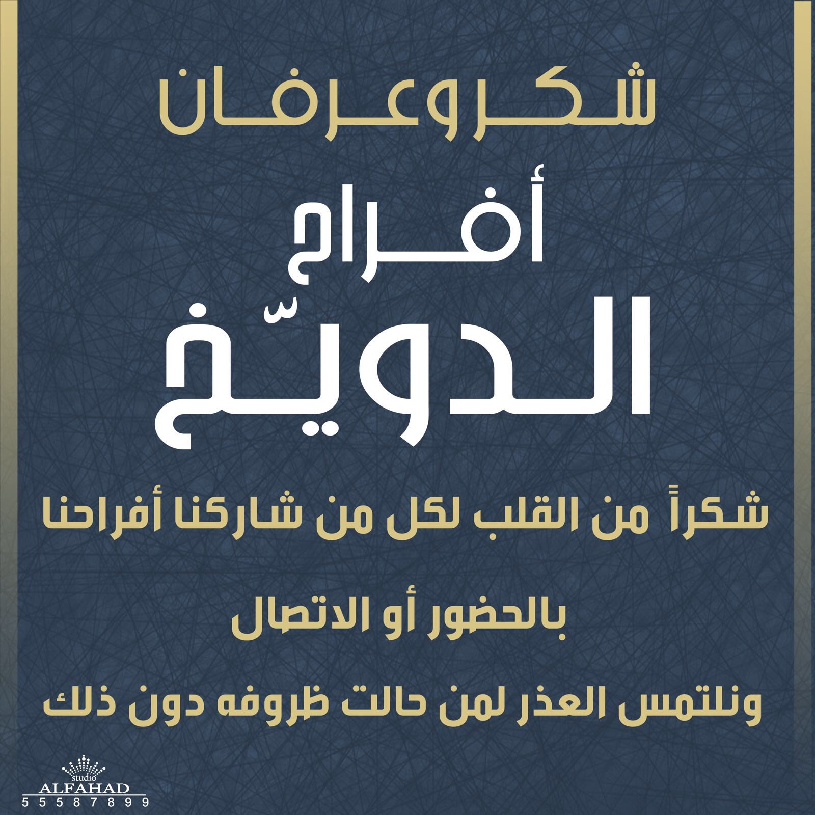 ذوي سعدون الرسمي On Twitter شكر وعرفان أفراح الدويخ شكرا من القلب لكل من شاركنا أفراحنا بالحضور او الأتصال ونلتمس العذر لمن حالت ظروفه دون ذلك ذوي سعدون الكويت Https T Co Qnemklgrre