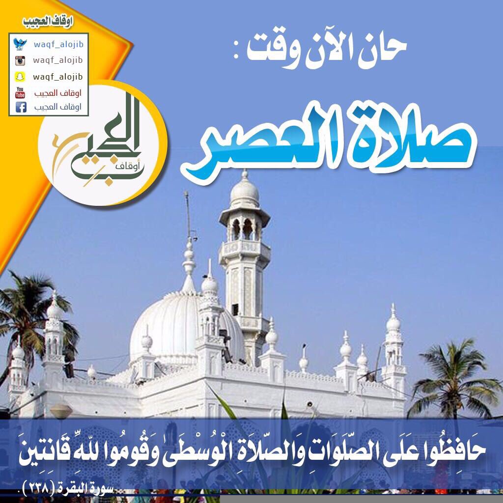 أوقاف محمد العجيب Twitterissa حان الآن موعد آذان صلاة العصر بتوقيت مكة المكرمة 3 49م الأحد 8 02هـ 4 07م من شهر شعبان الصلاة انشر النداء ولك الأجر تابعووووووونا Waqf Alojib اوقاف محمد العجيب
